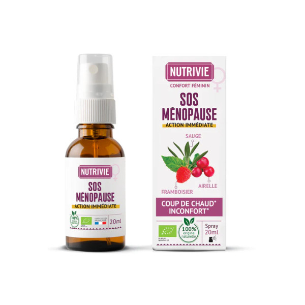 Le spray SOS Ménopause a été imaginé pour accompagner les femmes lors de la transition naturelle qu’est la ménopause. À cette période, la baisse progressive des hormones féminines peut s’accompagner d’inconforts tels que bouffées de chaleur, sueurs nocturnes, variations d’humeur ou sensations de fatigue. Pour aider à mieux vivre ces moments, ce spray réunit une formule bio, 100 % naturelle et sans hormone, conçue pour offrir une réponse rapide et ciblée au quotidien.