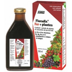 Floradix Fer 500ml Salus contient du fer organique provenant du gluconate ferreux, des vitamines B2, B6, B12 et C qui contribuent à la réduction de la fatigue nerveuse et physique et permet d'aider le métabolisme énergétique normal.