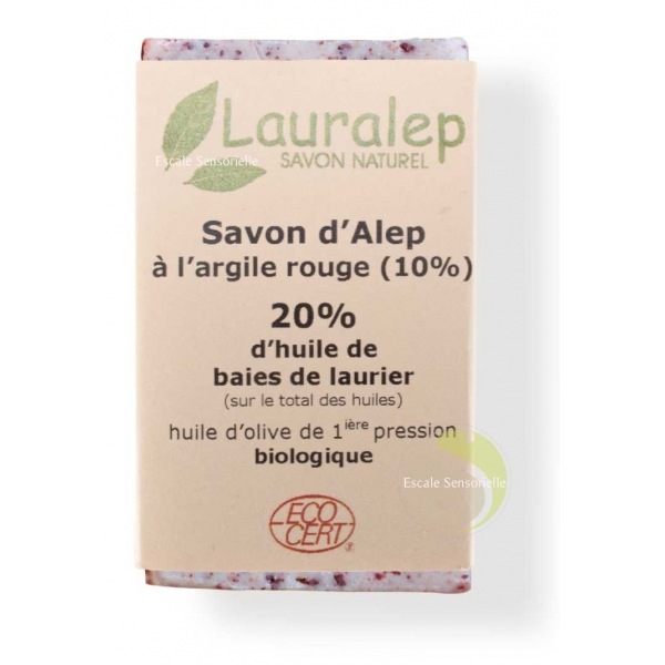Savon d'Alep bio à l'Argile Rouge 150g - Lauralep - Cosmébio, Ecocert, Naturel - Référencé sur Aromatic Provence.