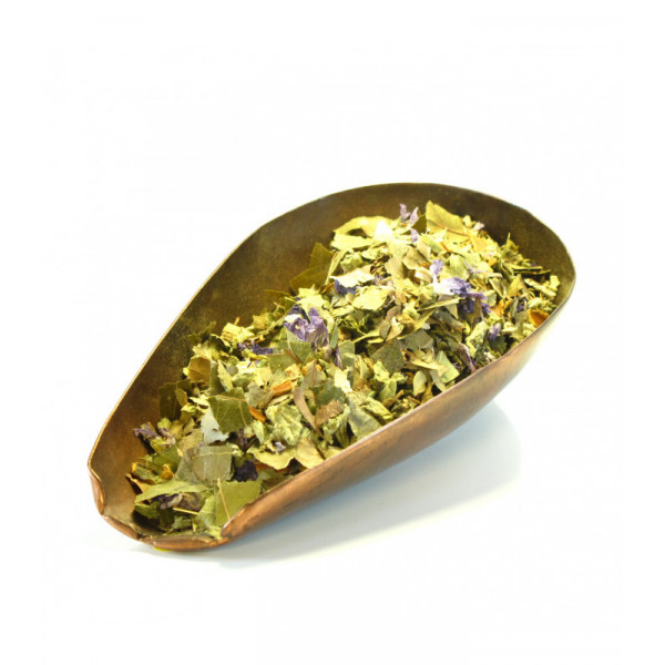 _Badiane fruit, ortie piquante feuille, fenouil doux fruit, guimauve feuille, guimauve racine, mauve feuille, mauve du nord fleur, menthe nanah feuille, pissenlit feuille. Mélange vrac de 120gr._